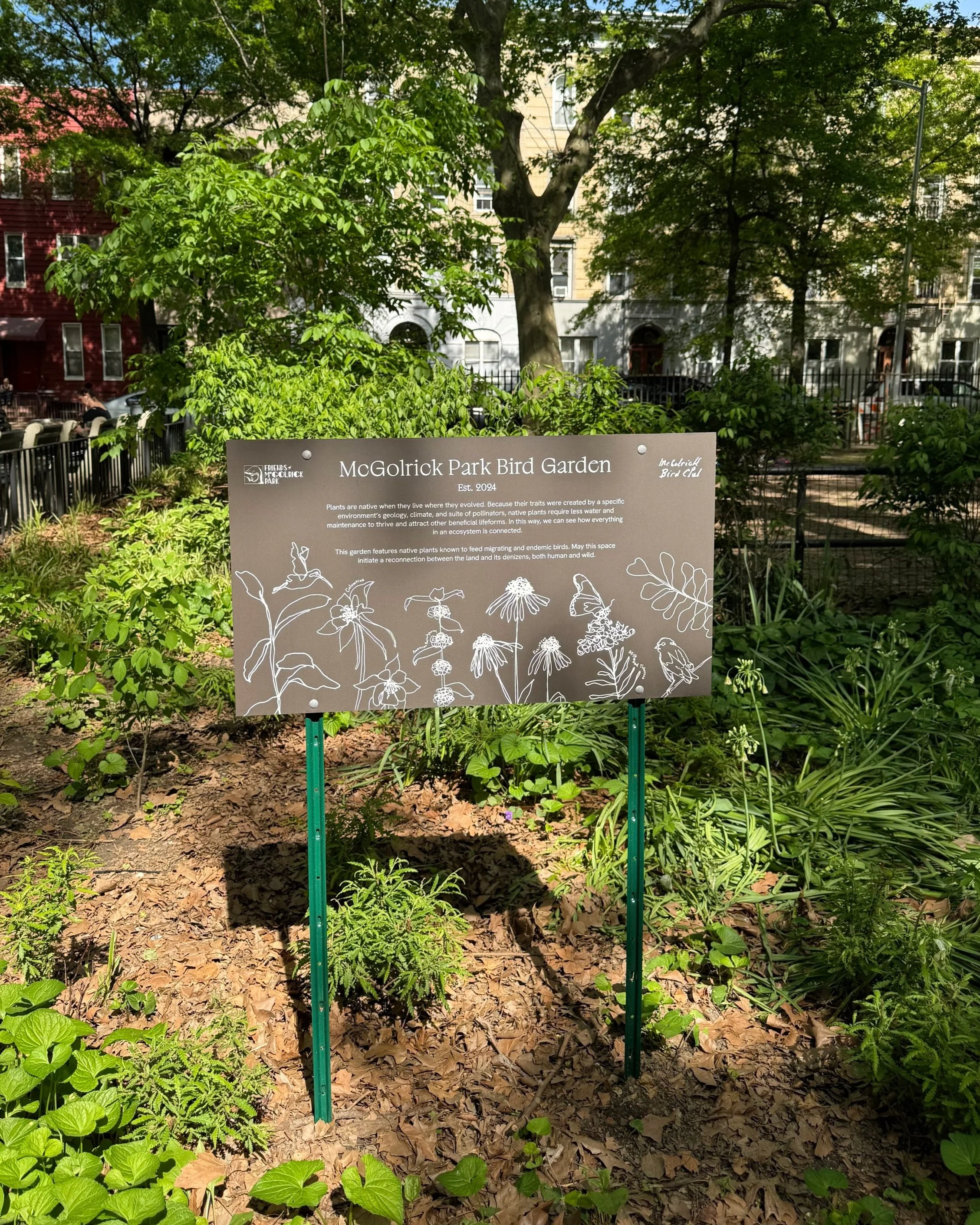 In 2025, we added 300 native plants to the McGolrick Bird Garden with additional support from NYC Parks and Lentol Garden. Near the park’s center, we installed 100 feet of fencing to protect a new bird sanctuary, affectionately known as the “Magic Bushes” by locals. These vibrant plantings not only enhance McGolrick’s beauty but also provide vital food and shelter for our avian visitors.